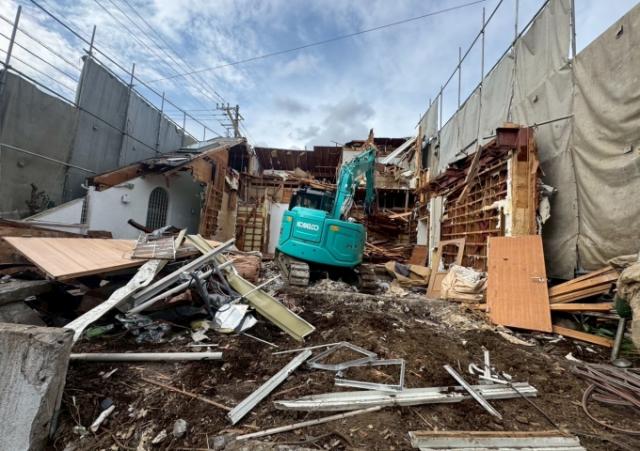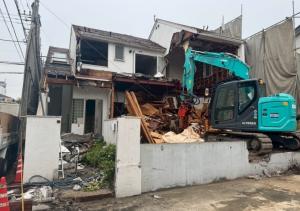 | 工事内容 | シート養生・居宅 躯体解体工事・居宅 基礎撤去工事・RC地下車庫 躯体解体工事・RC地下車庫 基礎撤去工事・タイル土間撤去処分・土留めCB撤去処分・樹木撤去処分・庭石撤去処分・花壇撤去処分・物置撤去処分・駐車場門構・シャッター撤去処分・カーポート撤去処分・庇撤去処分・残土鋤取り撤去処分・アスベスト検体調査・残置物回収処分 |