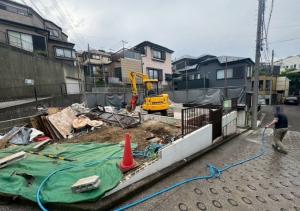 | 工事内容 | 躯体解体工事 基礎解体工事 土間 樹木 コンクリートブロック シート養生・RC地下車庫撤去処分・アスベスト事前調査 |