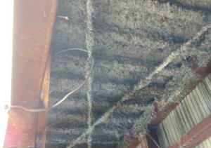 建物解体中にアスベストの吹付が出てきましたので、現場を一時中断して区役所に報告のうえ、 除去作業を行わせていただきました。 |