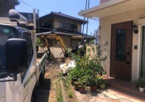 いつもお仕事をいただけます不動産会社様からの案件でした。 前面の道路がカーブのスロープで車両を止めると近隣にご迷惑になるため、 敷地内の駐車場に止めましたが、幅がギリギリの為、 本来は最後に行う左右の外構は、先に撤去しました。 また作業員の敷地内への出入りも近隣住人様にご協力いただきまして、 工事は早めに進めることが出来ました。 一週間で工事完了になりました。 |