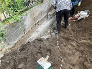 境界ブロック塀の土の中に埋まっている段数が見えている2段ブロックに対して5段と深くまで入っていました。