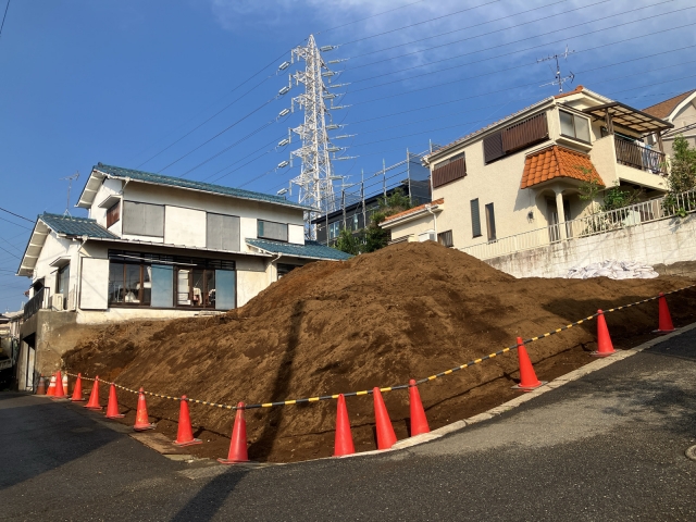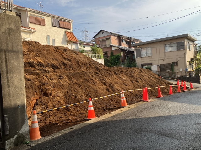 砂埃が舞ってしまい隣地様からクレームをいただきましたので、散水を多めに行い砂埃の発生防止に努めました。
