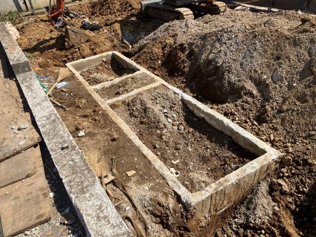 地中内より大型のRC浄化槽が出てきましたので、 施主様に現地で確認いただき、了承の上撤去させていただきました。 |