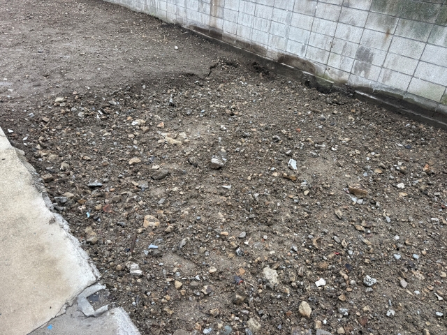 | 工事内容 | 基礎解体工事 土間 シート養生・躯体解体工事(重機)・庇屋根部分撤去処分・外周目隠し壁撤去処分・アスベスト分析 |