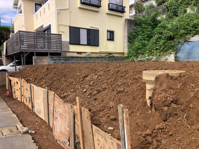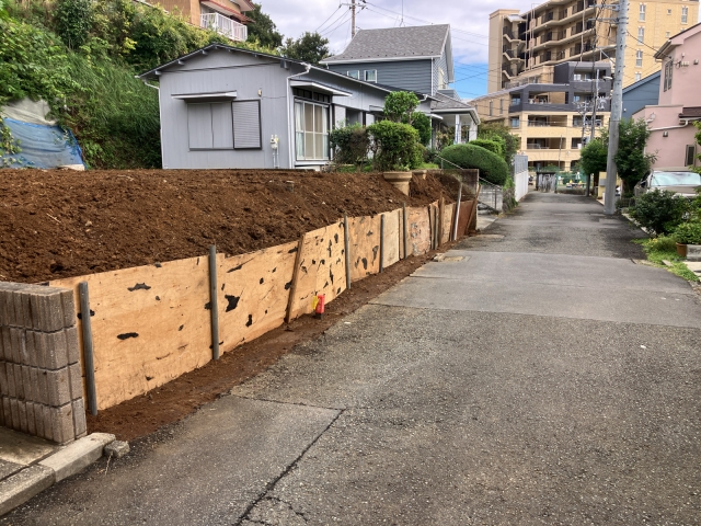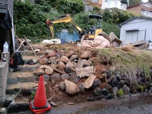 | 工事内容 | 躯体解体工事 基礎解体工事 土間 樹木 コンクリートブロック 養生工事・下草撤去処分・石積み階段・擁壁撤去処分・屋根スレート除去処分・検体採取石綿含有分析調査・水道管試掘工事 |