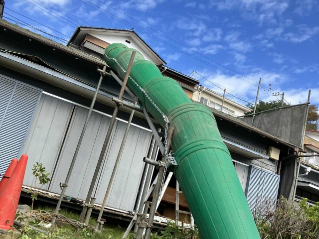解体中は近隣の皆様のご支援に頼るしかない現場でした。