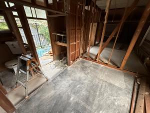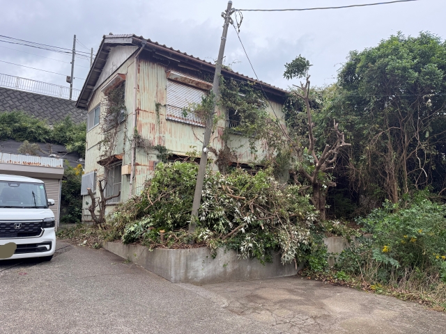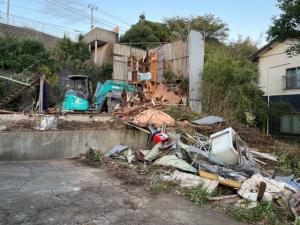 | 工事内容 | 基礎解体工事 土間 コンクリートブロック シート養生・躯体解体工事(重機)・基礎撤去工事・土間撤去処分・CB撤去処分・間知ブロック擁壁撤去処分・樹木撤去処分・車庫撤去処分・アスベスト検体調査 |