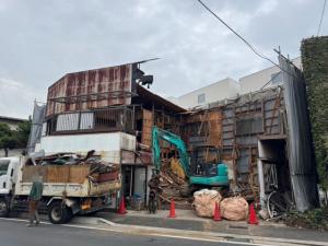| 工事内容 | 躯体解体工事 基礎解体工事 土間 コンクリートブロック シート養生・鉄骨階段撤去処分・物置撤去処分・アスベスト検体調査・鉄骨柱除去工事 |