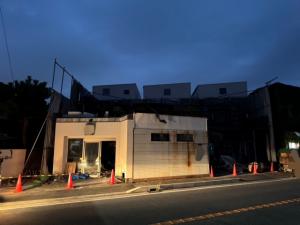 前面道路は、幹線道路ということもあり手壊しで作業スペースを確保しての工事進行となりました。