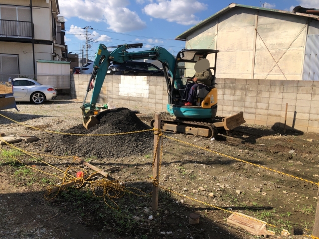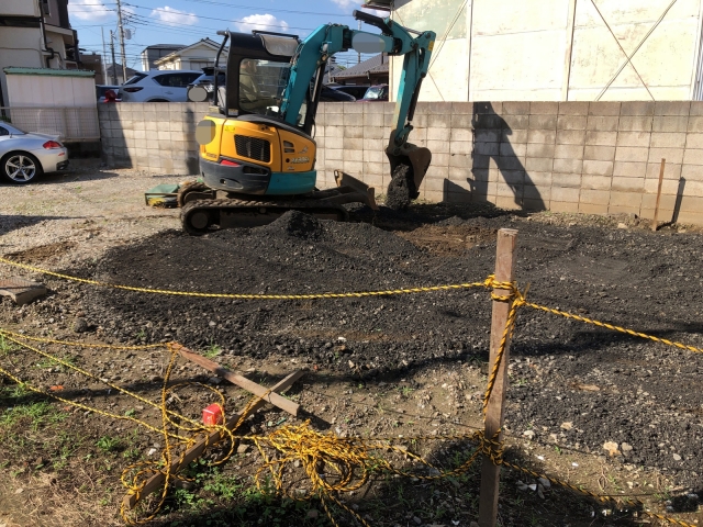 砕石はお施主様の方でご用意いただき現場にすでに積まれておりましたので、