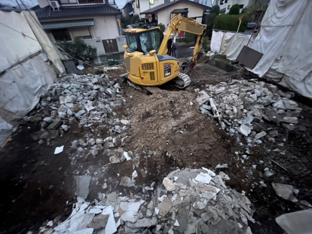 住宅街の木造建物で、前面道路も広く工事のしやすい現場でした。 近隣様へのご挨拶時に以前近くで解体工事があり振動がすごかったのでおさえてほしいと要望がありました。 できる限り重機の動かし方を注意し、近隣様から指摘されることなく完了致しました。 |