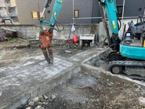 | 工事内容 | 躯体解体工事 基礎解体工事 土間 樹木 コンクリートブロック シート養生・間地撤去処分・敷石・庭石撤去処分・残置物回収・アスベスト分析 |