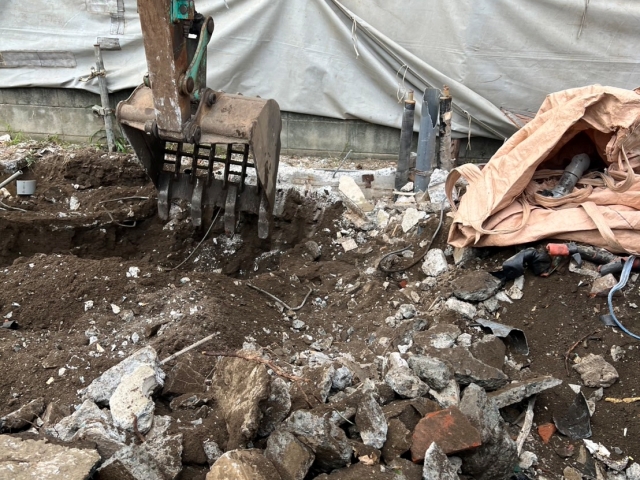 | 工事内容 | 躯体解体工事 基礎解体工事 土間 樹木 コンクリートブロック シート養生・カーポート・フェンス撤去処分・アスベスト検体・埋設物撤去処分 |