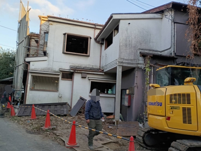 | 工事内容 | 躯体解体工事 基礎解体工事 土間 養生工事・コンクリートブロック塀撤去処分・大谷石撤去処分・RC擁壁撤去処分・樹木下草撤去処分・庭石・敷石他撤去処分・バルコニー撤去処分・数寄屋門他撤去処分・不用品回収・フレキシブルボード除去処分・検体採取石綿含有分析調査・不用品回収 |