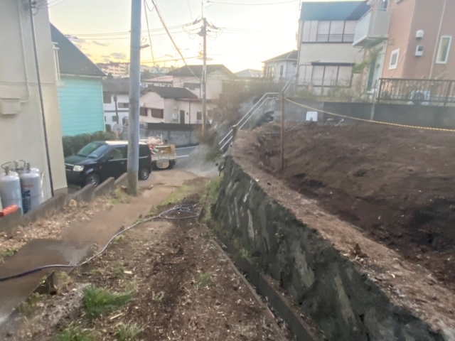 樹木も多く重機を入れるスペースを確保できるまで、手作業で行いました。