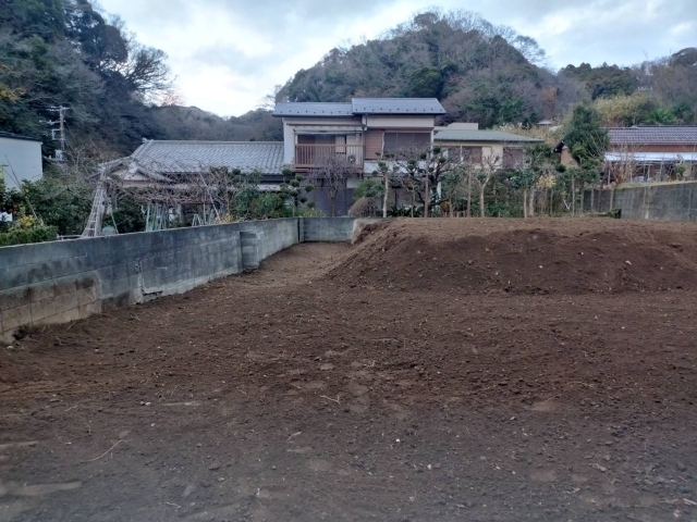 | 工事内容 | 基礎解体工事 土間 樹木 コンクリートブロック シート養生・躯体解体工事(重機)・アスベスト検体調査 |
