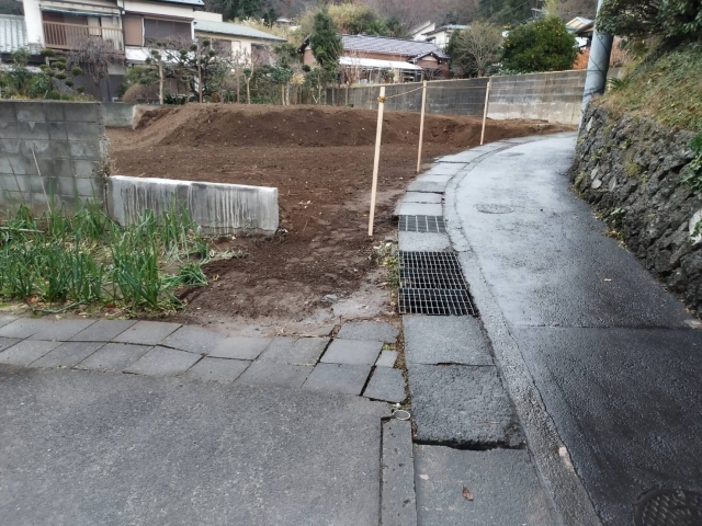 お隣様のご厚意で工事中 お土地をお借りし工事を行いました。