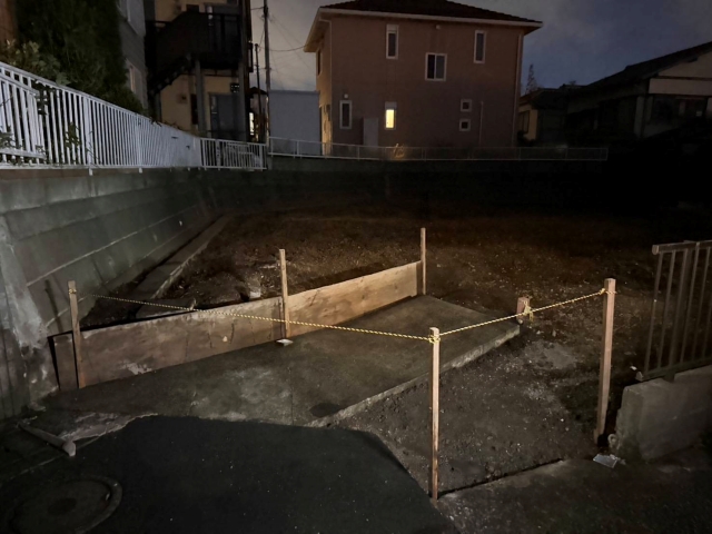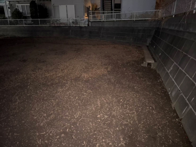 | 工事内容 | 基礎解体工事 土間 樹木 コンクリートブロック シート養生・躯体解体工事(重機)・アスベスト分析・残置物撤去処分 |