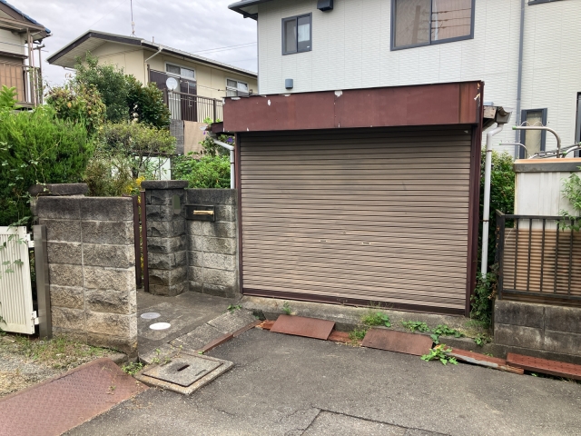 駐車場脇の門扉からは重機を敷地内に搬入する事が出来ない為、先行して車庫を手壊しで解体しました。
