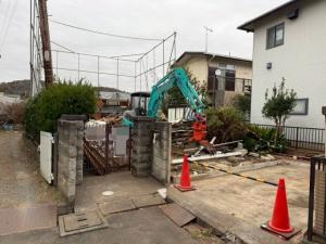 | 工事内容 | 躯体解体工事 基礎解体工事 土間 コンクリートブロック 養生工事・樹木下草撤去処分・庭石・敷石撤去処分・バルコニー他撤去処分・門扉・物置撤去処分・車庫撤去処分・検体採取石綿含有分析調査 |