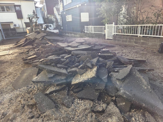 普段よりお世話になっておりますハウスメーカー様から駐車場アスファルト撤去のご依頼でした。
