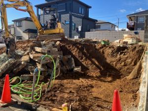 | 工事内容 | シート養生・庭石撤去処分・大谷石擁壁・残土出し・簡易土留め設置費用・アスベスト事前調査 |