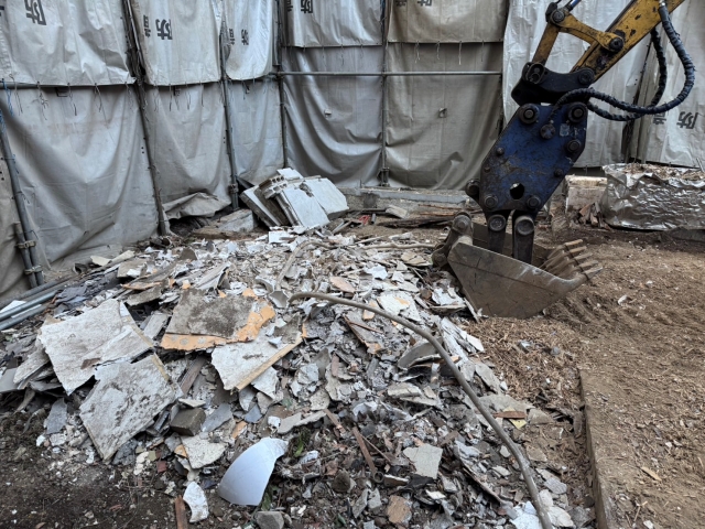 | 工事内容 | 躯体解体工事 基礎解体工事 土間 コンクリートブロック シート養生・アスベスト検体検査・交通誘導員 |