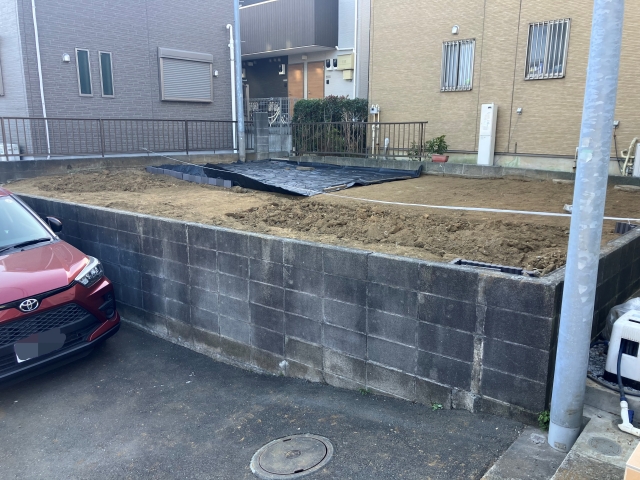 17万4千円(土間撤去処分・CB撤去処分・樹木撤去処分・庭石撤去処分・室外残置物撤去処分・土留め設置)